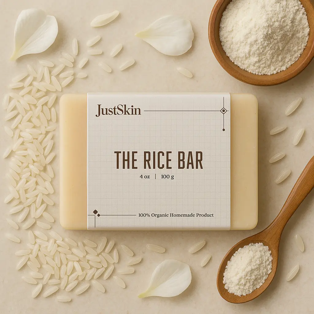 Concept: Think of this bar as a gentle polish for your skin. Rice flour smooths, aloe vera calms, while coconut and vitamin E lock in softness. A hint of lavender keeps it fresh, leaving your skin calm, bright, and touchably soft.